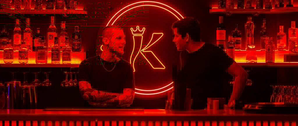 On the other, a cocktail bar where the lights dim, the music rises, and the atmosphere shifts completely.